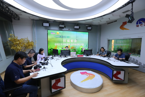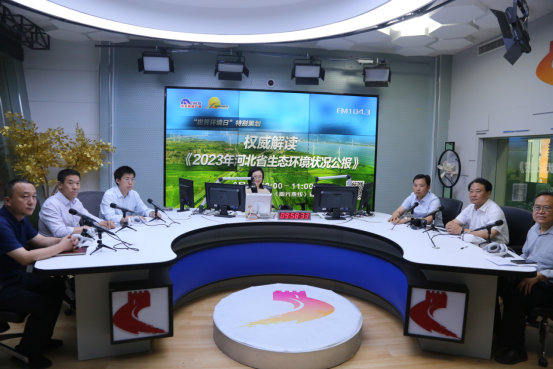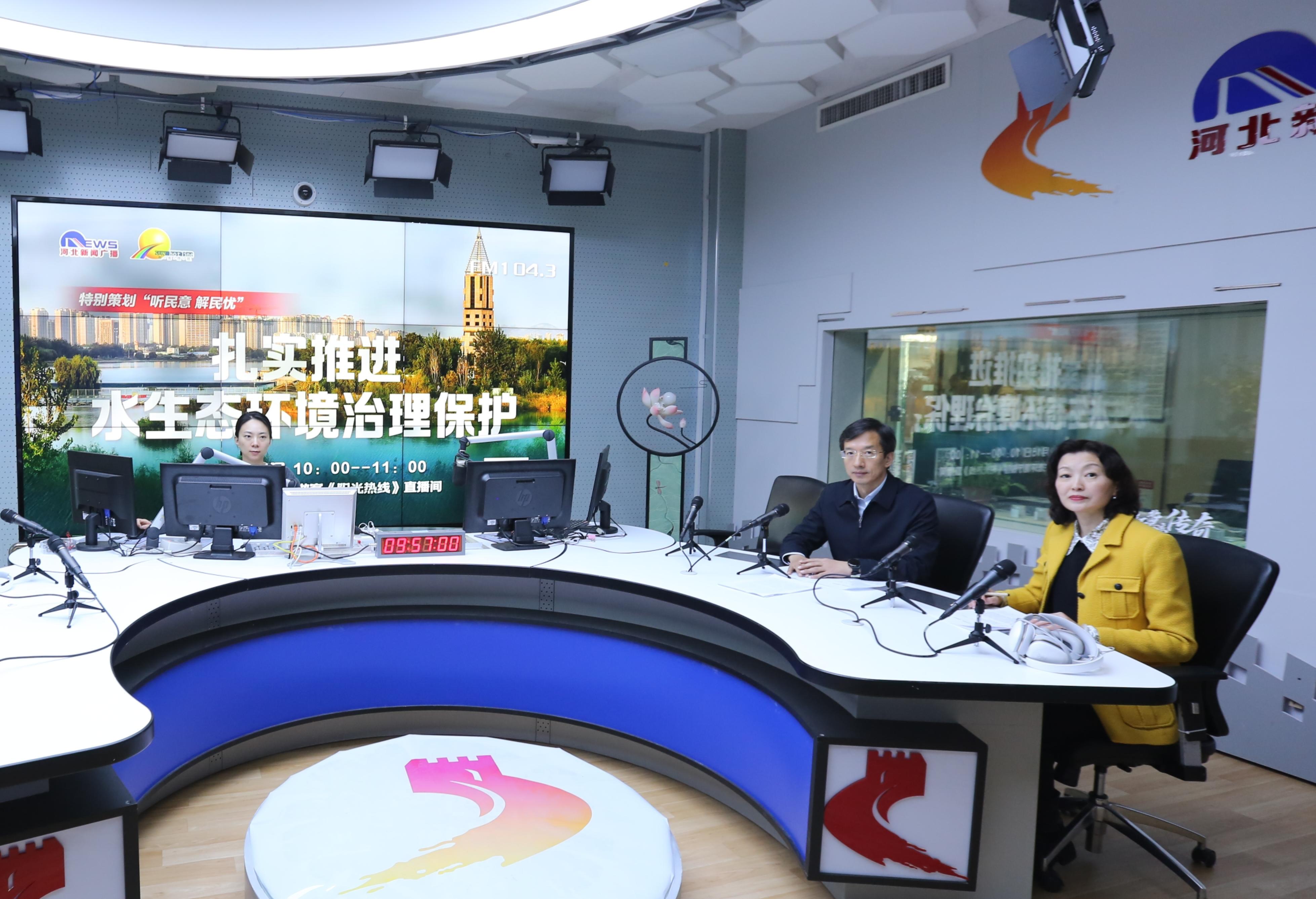 2023年6月9日上午,啪啪啦 就近日正式发布的《2022年河北省生态环境状况公报》参加了河北广播电视台新闻广播《阳光热线》栏目访谈。厅海洋生态环境处二级调研员华冰群、生态环境监测处副处长董敏鹏、