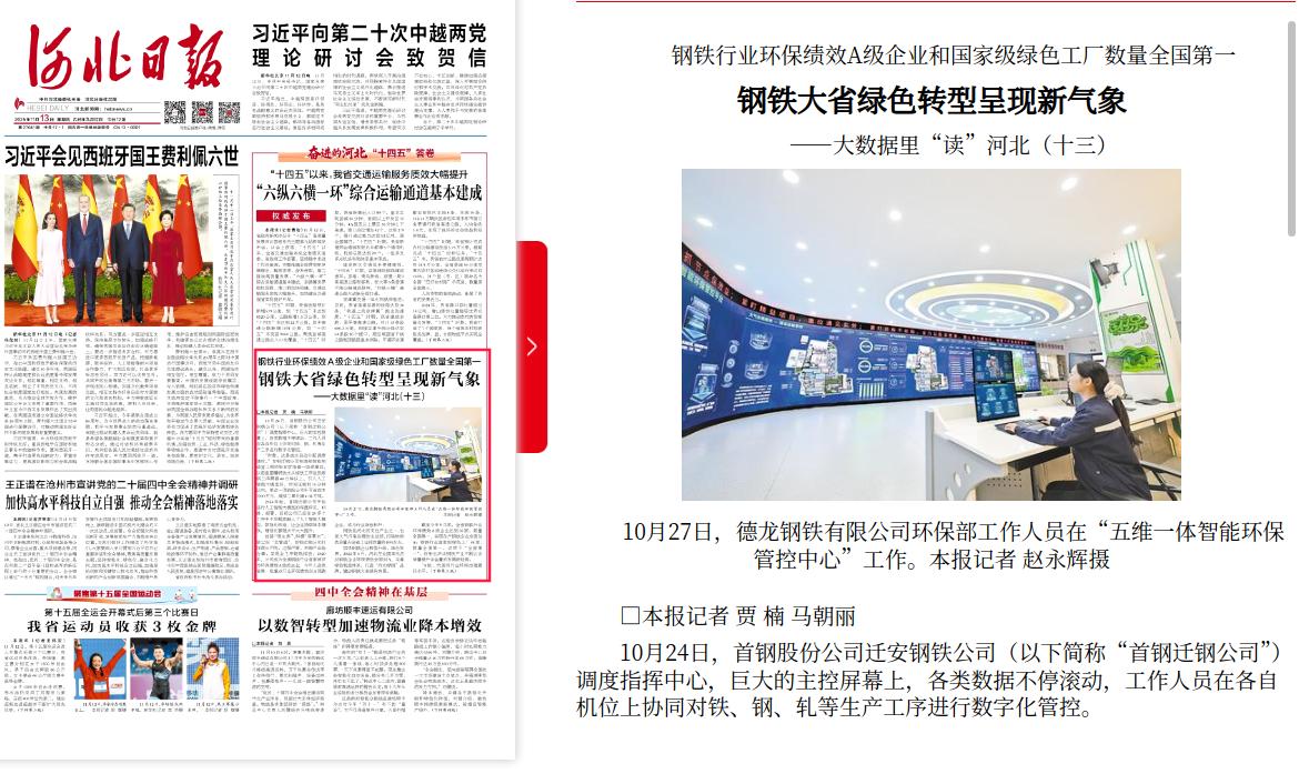 河北日报:钢铁行业环保绩效A级企业和国家级绿色工厂数量全国第一 钢铁大省绿色转型呈现新气象 ——大数据里“读”河北(十三)