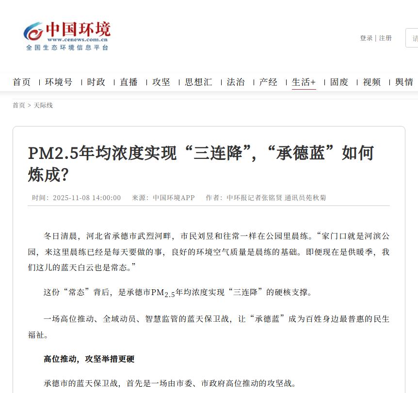 中国环境客户端:PM2.5年均浓度实现“三连降”,“承德蓝”如何炼成?