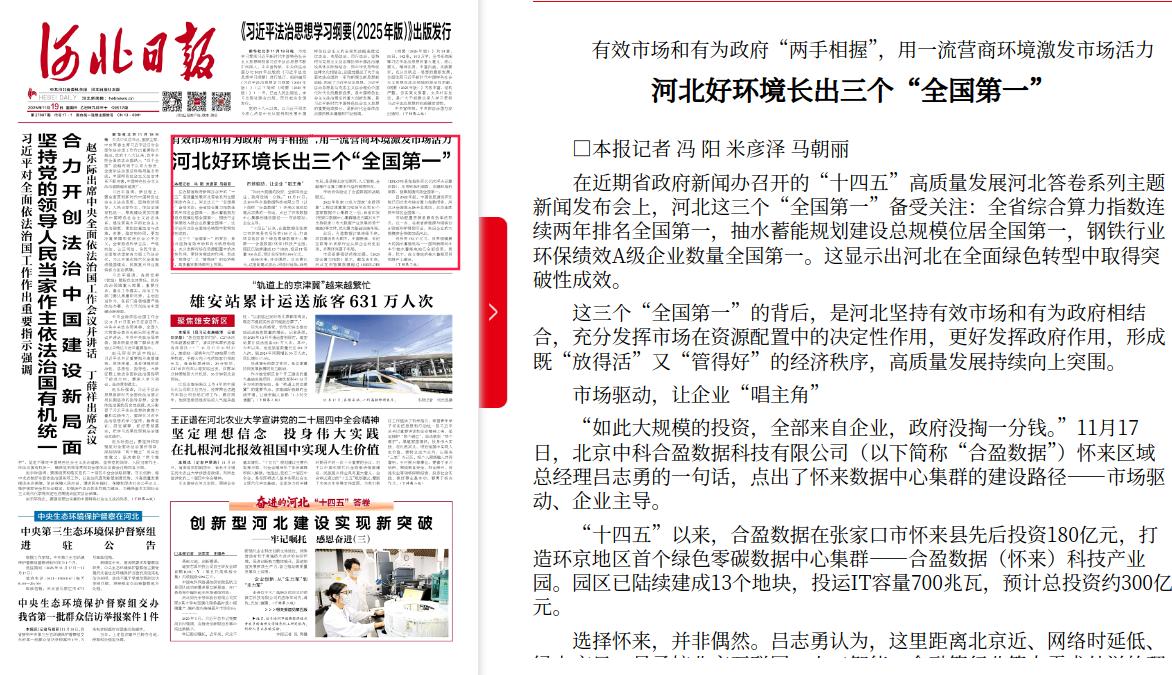 “当地政府高标准建设电力、供水等配套设施,还开辟了绿色通道,启动项目审批‘容缺办理’模式,整个审批时限减半。”吕志勇表示,正是抓住了首轮智算产业风口,合盈数据(怀来)科技产业园得以高速发展。
