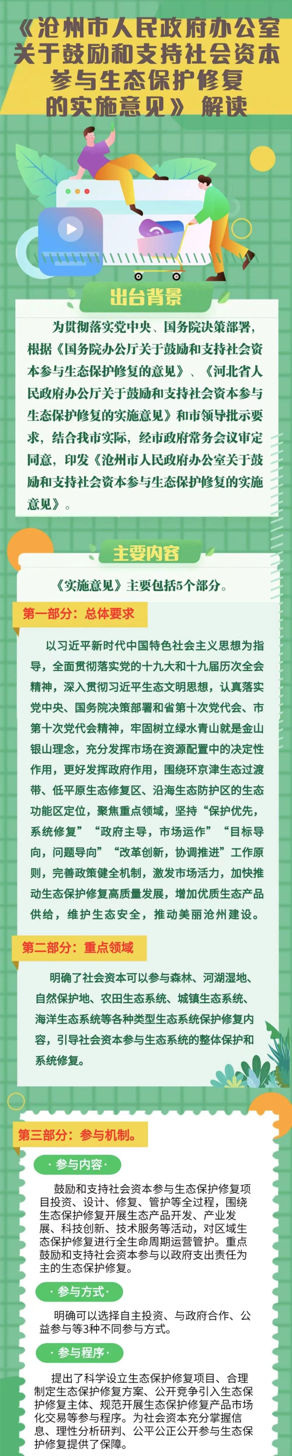 各地头条丨一图读懂沧州市人民政府办公室关于鼓励和支持社会资本参与生态保护修复的实施意见