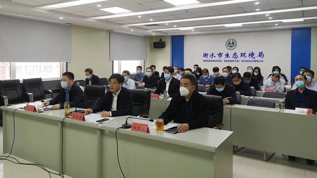 会议以视频形式召开,衡水市生态环境局领导班子成员,各科室、单位负责人在主会场参加会议,各县市区分局设分会场。