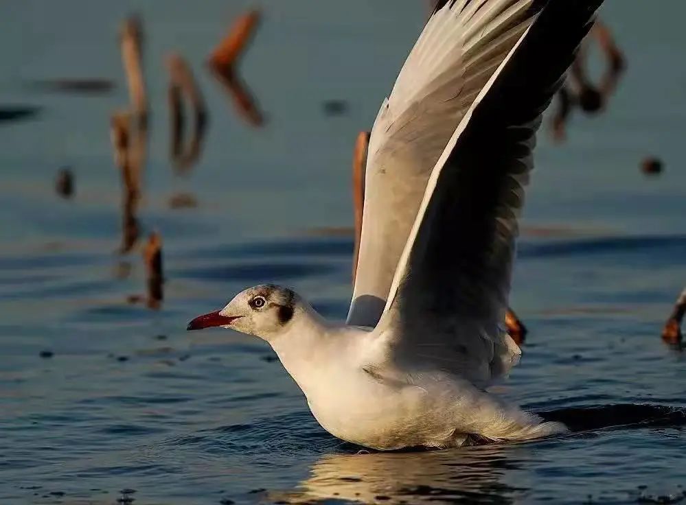 近日,衡水湖国家级自然保护区工作人员在日常鸟类监测中,发现一只棕头鸥在湖面觅食,这也是首次在衡水湖监测到棕头鸥。