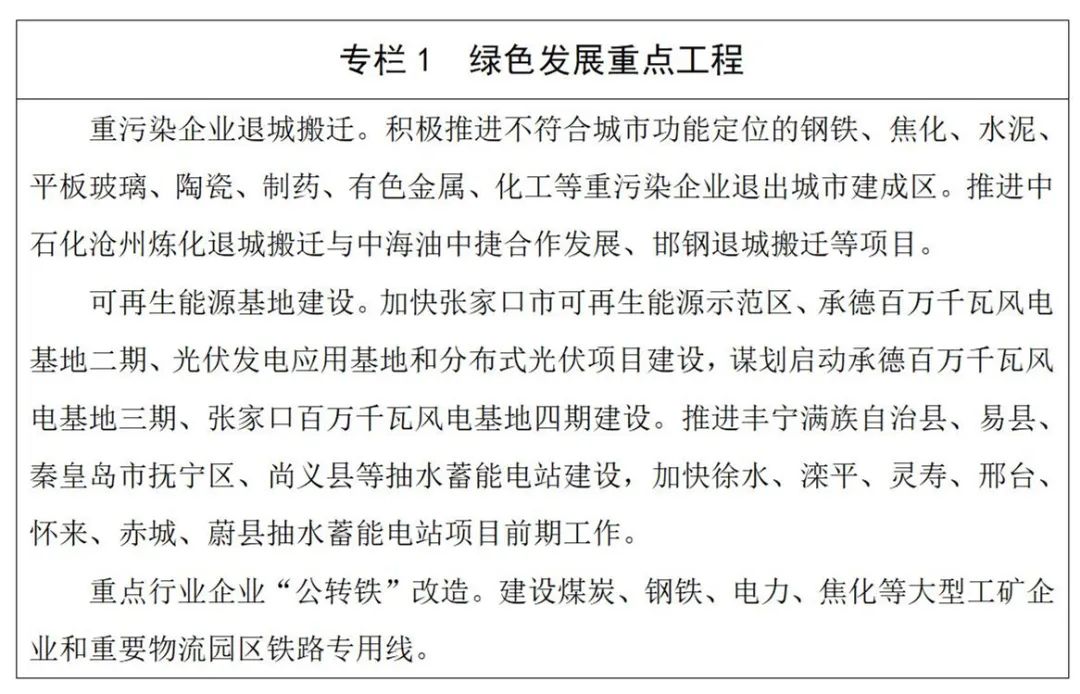 3.推动四大战略功能区绿色发展。在环京津核心功能区,突出人居环境风险防护,强化污染治理、产业结构调整及重点河湖污染防治,加强西部太行山和白洋淀生态修复保护。在沿海率先发展区,加强海洋环境治理和风险防控,保护沿海生态空间,引导重化工产业优布局、控规模。在冀中南功能拓展区,推进传统产业提升改造,构建现代工业体系,加快基础设施建设、农业种植结构调整。在冀西北生态涵养区,重点发挥生态保障、水源涵养、旅游休闲等功能,发展绿色产业和生态经济,规划建设燕山—太行山自然保护地。