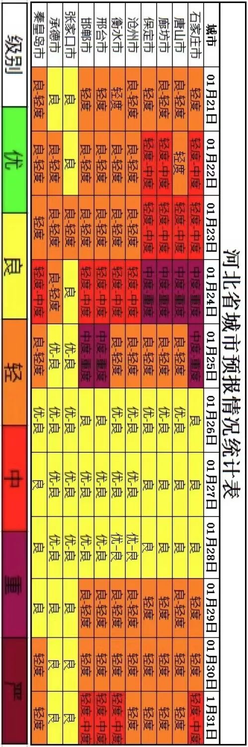 经河北省生态环境应急与重污染天气预警中心与中国环境监测总站和省环境气象中心联合会商,预计2022年1月下旬(21~31日),前期我省大部地区主导风向以偏东及东北风为主,风力逐渐转弱,湿度升高,大气扩散条件转差,22~25日,我省中南部和东部地区可能出现一次中度及以上污染过程;26~29日,受多股东北风扰动影响,空气质量预计得到有效改善;30~31日,地面气压场转弱,大气扩散条件逐渐转差,南部城市有出现中度污染的风险。