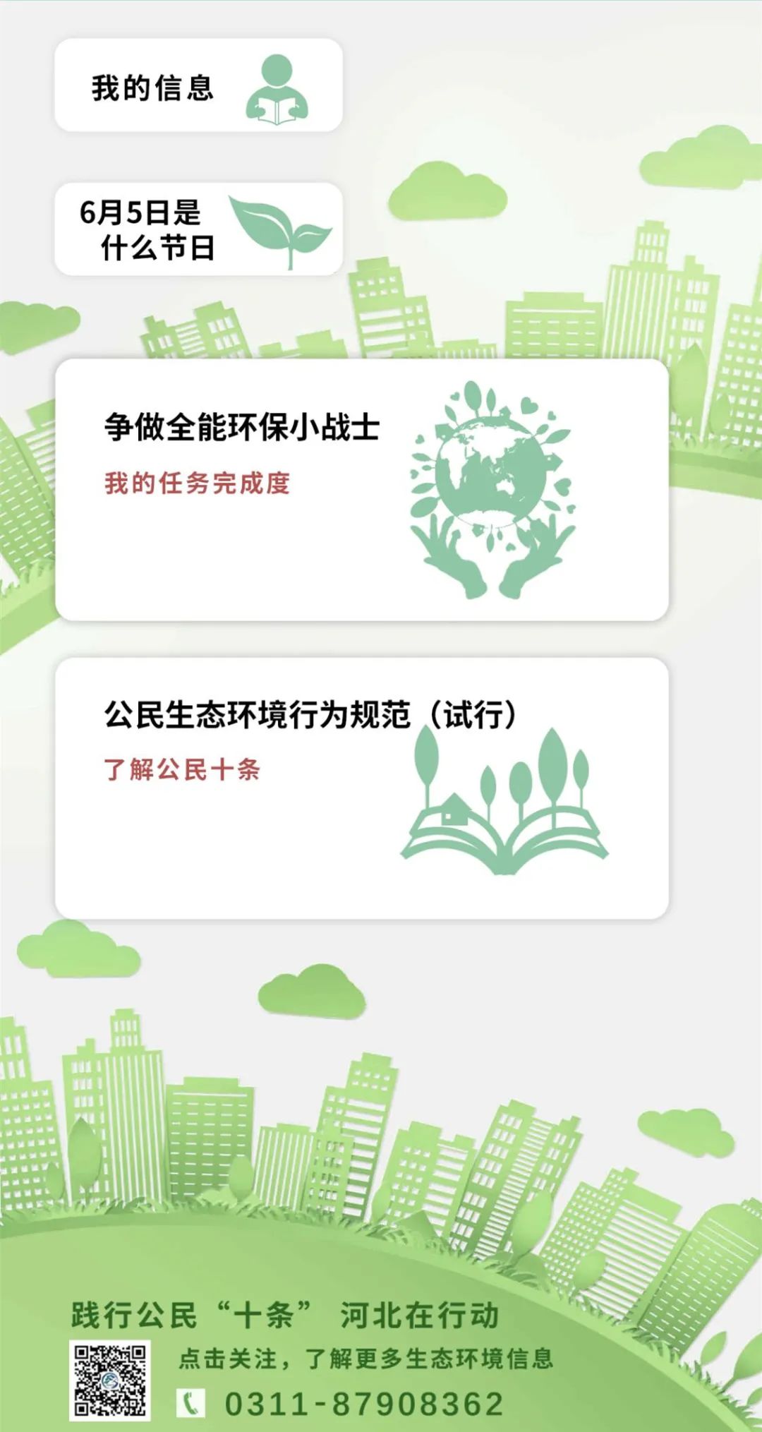 为深入宣传贯彻习近平生态文明思想,弘扬生态文化,培育生态道德,进一步加强生态文明宣传教育,引领我省中小学生增强生态环境保护意识,提升生态文明素养,践行生态环境保护实践活动,养成绿色低碳行为习惯,啪啪啦 、河北省教育厅联合开展河北省中小学生践行“公民十条”实践活动。