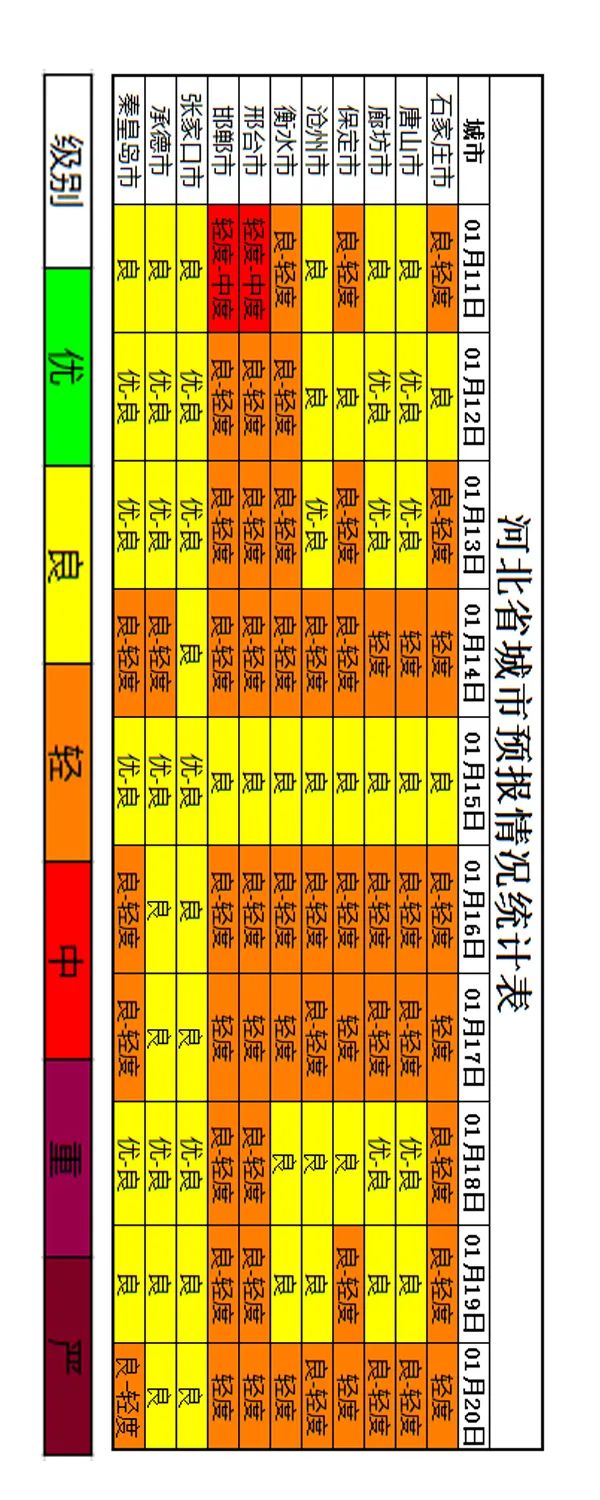 经河北省生态环境应急与重污染天气预警中心与中国环境监测总站和省环境气象中心联合会商,预计2022年1月中旬(11日~20日),1月11日,受南风回流影响,我省南部城市可能达到中度污染水平;12日~20日,受多股冷空气间歇影响,大气扩散条件变化较快,不利气象条件持续时间较短,我省北部和东部地区空气质量以良为主,中南部地区空气质量以良至轻度污染为主。