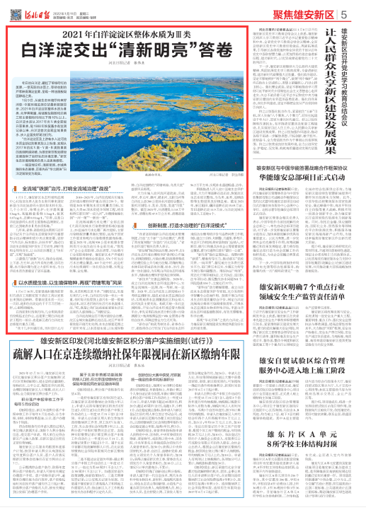 “白洋淀淀区及上游有水入淀河流水质全部达到Ⅲ类及以上标准,实现从2017年的劣Ⅴ类-Ⅴ类-Ⅳ类到Ⅲ类的连续跨越突破,为雄安新区规划建设发展提供了良好生态环境支撑。”新区生态环境局相关负责人由衷地感喟。