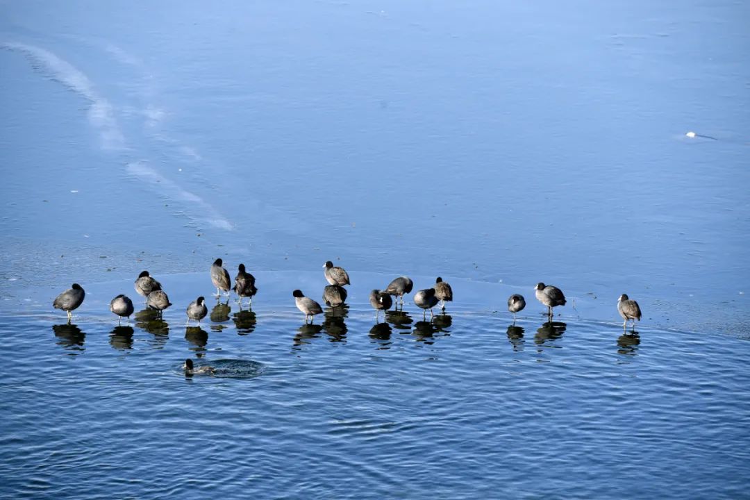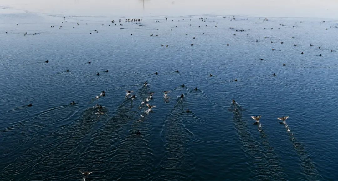 隆冬时节,走进廊坊市文安县赵王新河湿地公园,水面碧波荡漾,清澈的河水吸引了上千只野鸭在此繁殖栖息。它们时而翩翩起舞、时而将头潜进水中觅食,嬉戏玩耍,很是怡然自得。