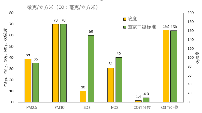 2021年,河北省大气环境中六项污染物浓度均显著下降。其中,PM2.5和CO分别同比下降了15.3%和26.3%,为2013年以来同比下降率最高的一年。