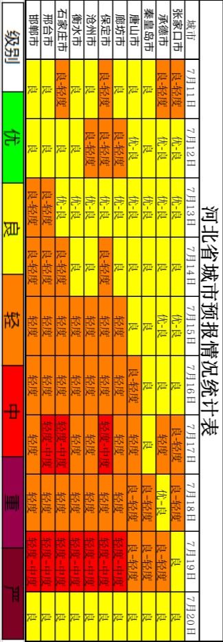 经河北省生态环境应急与重污染天气预警中心与中国环境监测总站、省气象灾害防御和环境气象中心联合会商,预计2022年7月中旬(11日~20日),期间15日~19日,我省大部地区处于降水间歇期,天空云量偏少,受南风影响,气温升高,中南部城市午后最高温度达35℃,可能出现臭氧轻度至中度污染过程。
