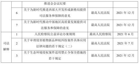 图为2021年最高人民法院发布的环境资源司法解释情况。图表来源:中国环境司法发展报告(2021)