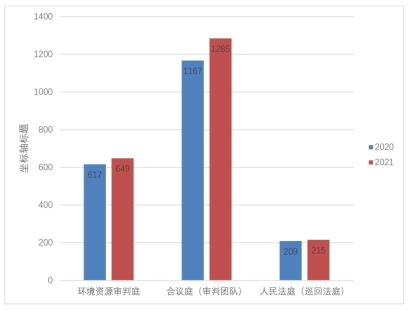 图为2020年和2021年全国环境资源审判专门机构设置情况。