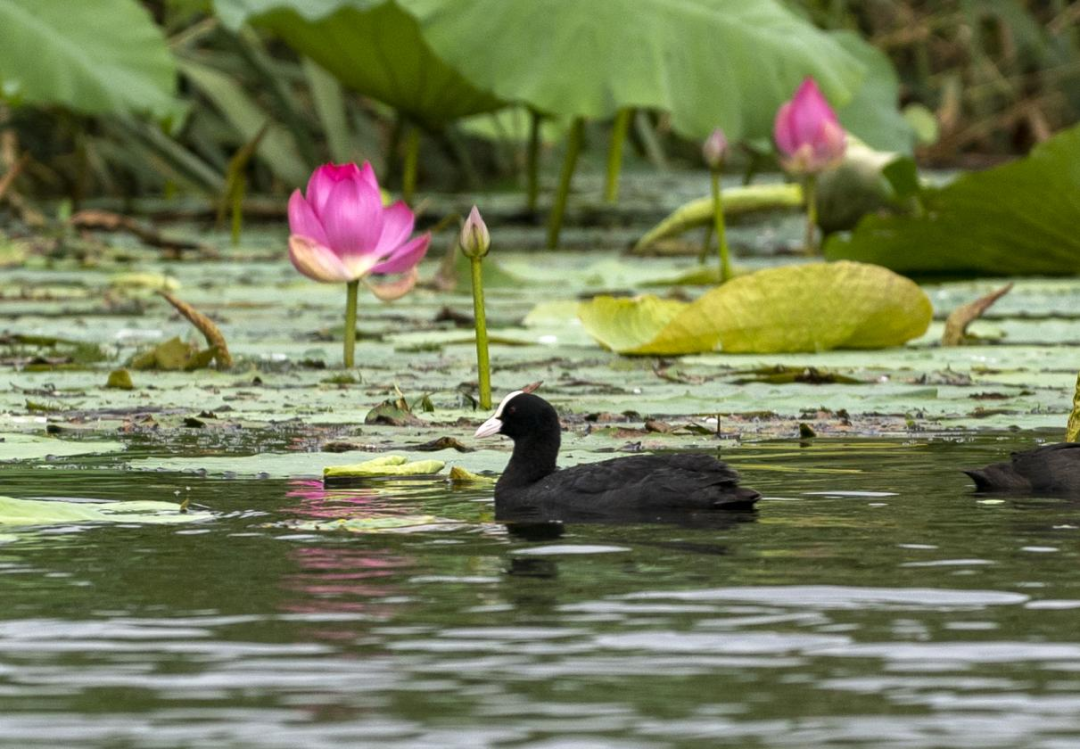 2022年7月18日,白洋淀里的白骨顶鸡。河北日报记者李东宇摄