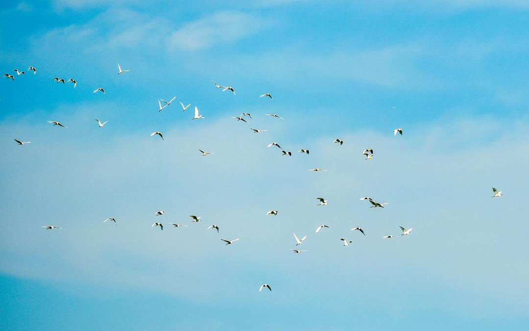 2022年7月18日,白洋淀里成群的白鹭在翱翔。河北日报记者李东宇摄