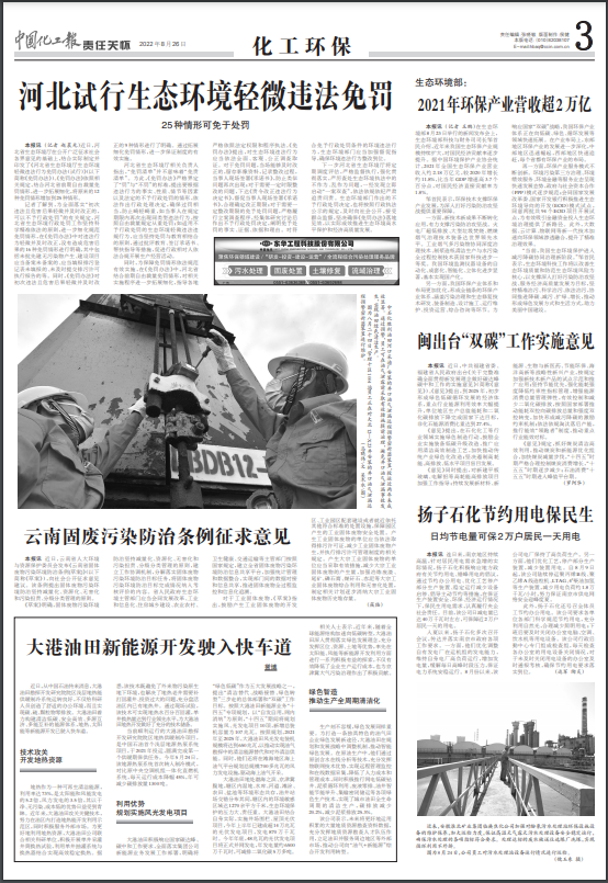 河北试行生态环境轻微违法免罚 25种情形可免于处罚(中国化工报)