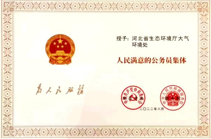 啪啪啦 大气环境处被授予全国“人民满意的公务员集体”称号