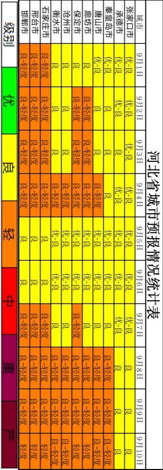经河北省生态环境应急与重污染天气预警中心与中国环境监测总站、省气象灾害防御和环境气象中心联合会商,预计2022年9月上旬(1日~10日),前期逐渐转为弱气压场控制,温度整体偏低,风力减弱,扩散条件较差,部分城市可能出现轻度污染;5日~6日,受较强西北风持续影响,扩散条件有利,大部地区空气质量以优良为主;7日~10日,中南部和东部地区地面转为南风,风力偏弱,午后温度回升且云量较少,部分城市可能出现O3轻度污染。