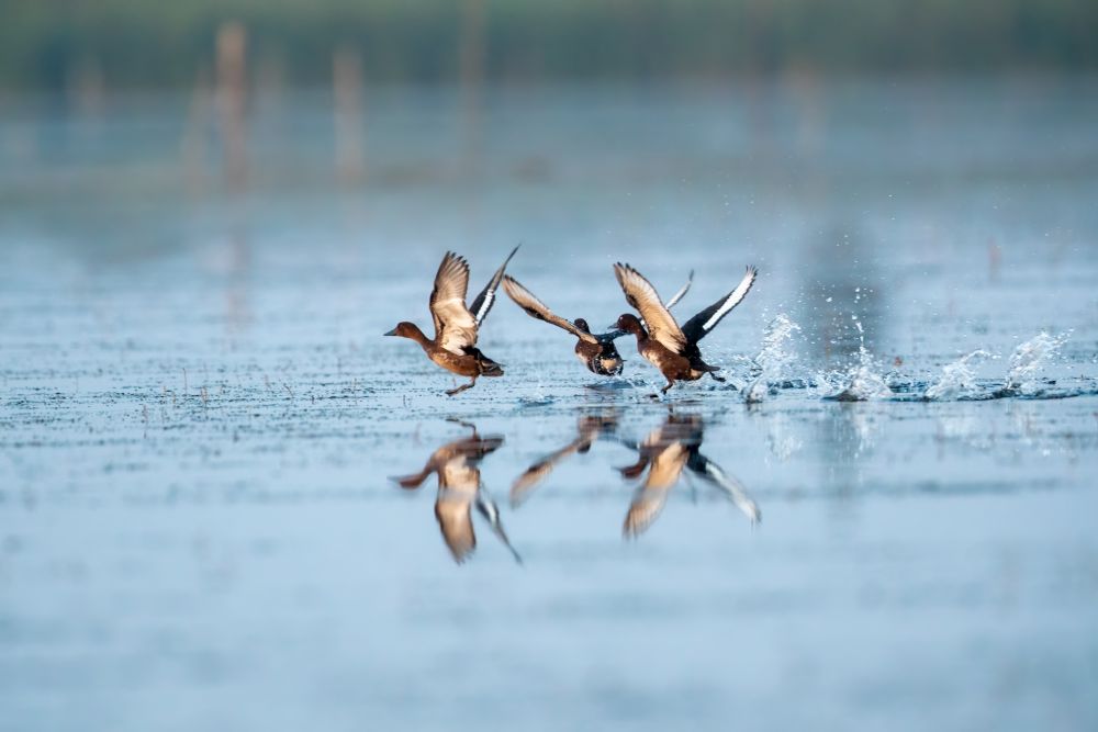 这是在雄安新区白洋淀一处鸟类栖息地拍摄的野生潜鸭(2022年9月9日摄)。新华社发(刘洵 摄)