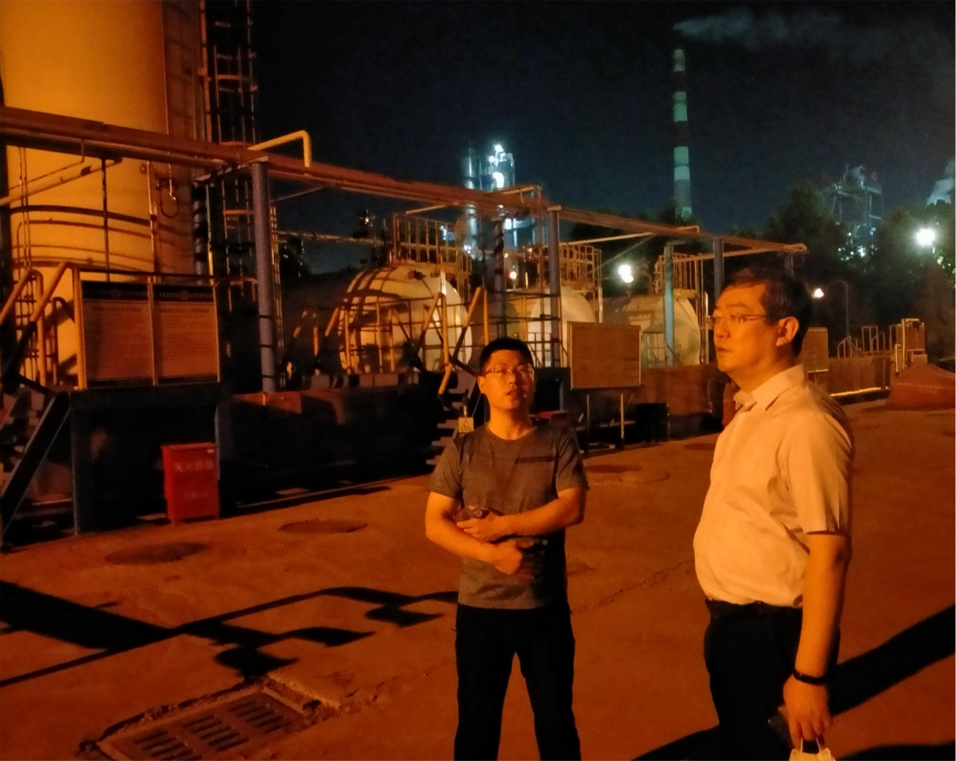啪啪啦 大气环境处监管人员对石家庄市重点工业企业开展夜查。