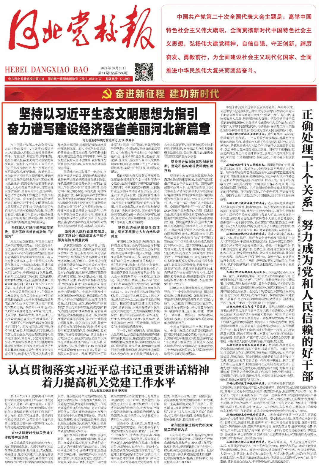 生态文明建设功在当代、利在千秋。全省生态环境系统将紧密团结在以习近平同志为核心的党中央周围,深入贯彻习近平生态文明思想,始终牢记“国之大者”,解放思想、奋发进取,坚定不移推进生态文明建设,扎实推动党的二十大精神落地见效,奋力谱写建设经济强省、美丽河北新篇章。