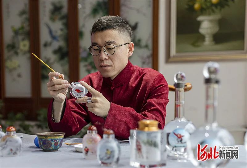位于滏阳河畔的衡水习三内画博物馆内,冀派内画第三代传人粘跃峰在创作内画。