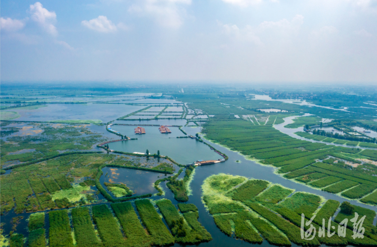 8月3日,航拍的雄安新区白洋淀元妃荷园景区附近水域。河北日报记者 李东宇摄