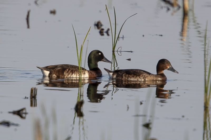 两只青头潜鸭在水中游弋。白洋淀淀区划定9个鸟类重要栖息地,野生鸟类现在达到237种,比新区设立前增加了31种,其中国家一级重点保护野生动物10种。(资料片)河北日报记者李东宇 摄