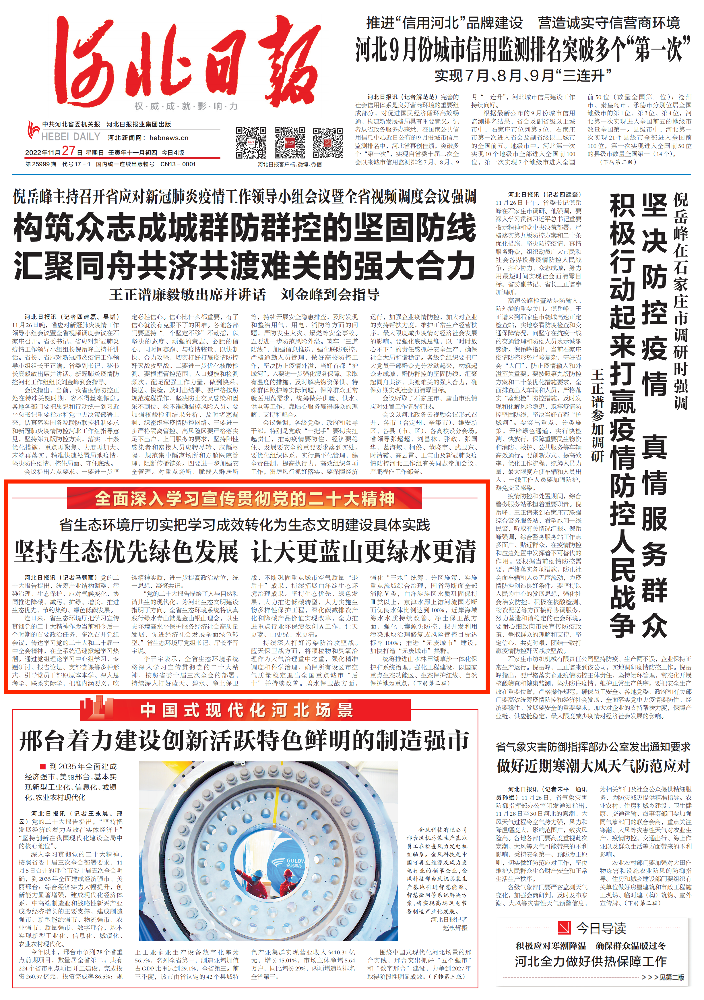 李晋宇表示,全省生态环境系统将深入学习宣传贯彻党的二十大精神,按照省委十届三次全会的部署,持续深入打好蓝天、碧水、净土保卫战,不断巩固重点城市空气质量“退后十”成果,持续拓展白洋淀生态环境治理成果。坚持生态优先、绿色发展,大力推进低碳转型,大力实施生物多样性保护工程,深化碳减排资产化和降碳产品价值实现改革,全力推进重点行业环保绩效创A工作,让天更蓝、山更绿、水更清。