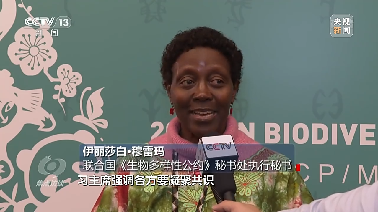 联合国《生物多样性公约》秘书处执行秘书 伊丽莎白·穆雷玛:习主席强调各方要凝聚共识,达成兼具雄心和行动的“2020后全球生物多样性框架”,他还强调了对生态系统保护的重要性以及保护所带来的益处,他强调建设生态文明就是要使人与自然和谐共生,这些对于正在进行的框架谈判具有很强的指引作用。