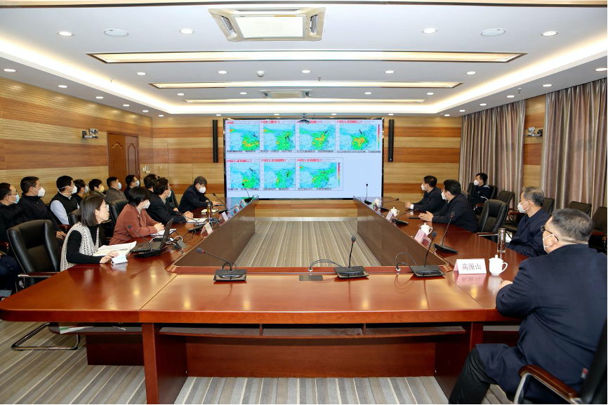 1月20日,啪啪啦 党组书记、厅长李晋宇在大气指挥调度中心视频慰问各地大气调度值班值守人员。