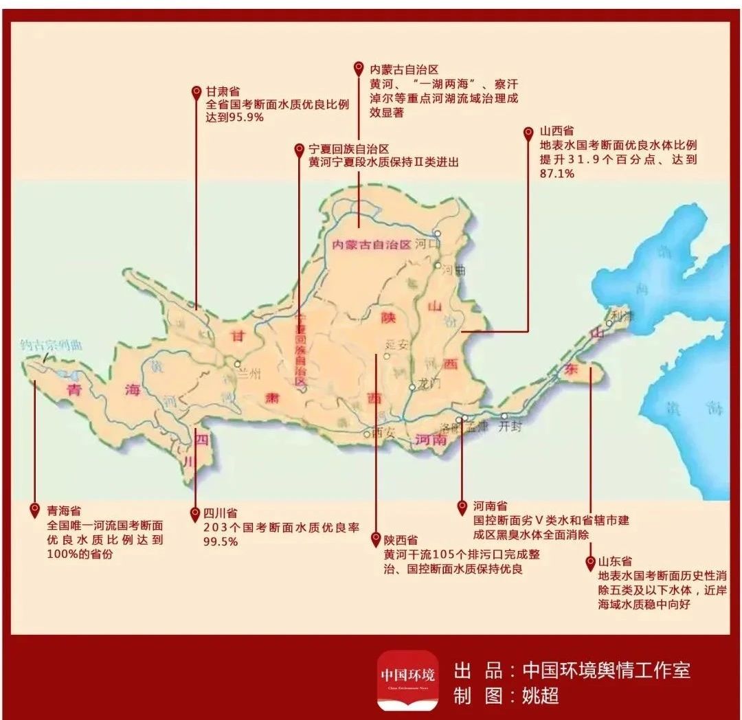 优良水质比例100%,这是青海作为长江、黄河发源地的底气,青海也成为全国唯一河流国考断面优良水质比例达到100%的省份。沿黄9省区不断强化黄河流域生态保护和高质量发展质效,甘肃省制定出台《甘肃省黄河流域生态保护条例》;河南省则将抓好黄河干支流河道泥沙资源化综合利用;陕西省黄河干流105个排污口完成整治、国控断面水质保持优良;宁夏回族自治区黄河宁夏段水质保持Ⅱ类进出,黄河高质量发展成效突出。