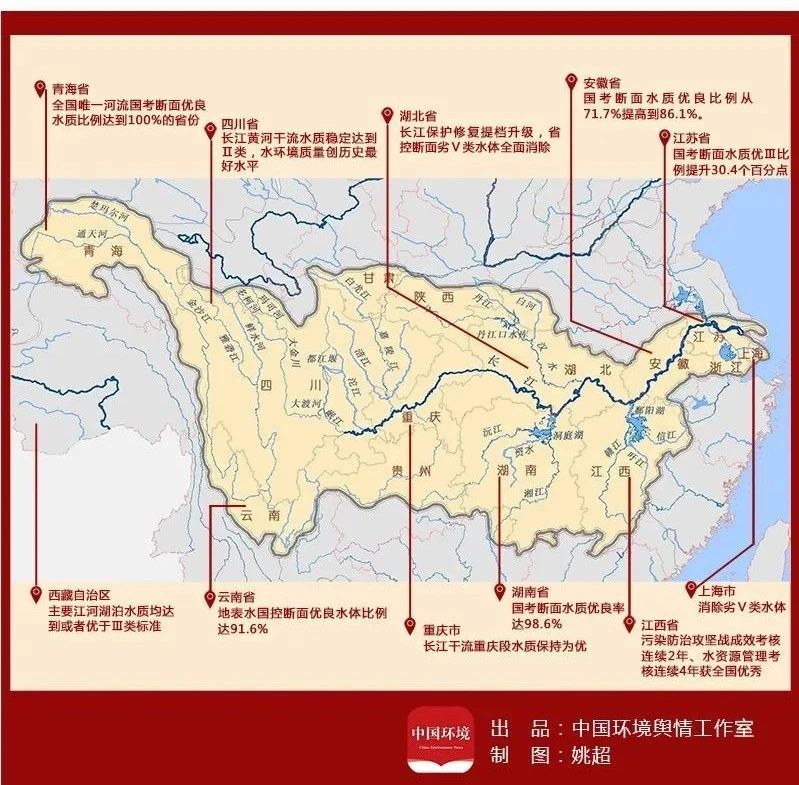 “共抓大保护,不搞大开发”,从“推动”到“深入推动”,再到“全面推动”,中央3次长江经济带发展座谈会定向领航,长江经济带沿线省份应声而动,在保护中发展,在发展中保护,长江经济带生态与发展互促共融、相得益彰。作为长江上游省份,青海省、贵州省、四川省等省份持续筑牢长江上游生态屏障。湖北省长江保护修复提档升级,省控断面劣Ⅴ类水体全面消除。湖南省国考断面水质优良率达98.6%。安徽省国考断面水质优良比例从71.7%提高到86.1%。持续抓好长江“十年禁渔”工作写入下一个五年的工作目标。