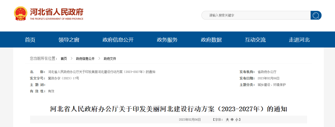 日前,河北省人民政府办公厅最新印发《美丽河北建设行动方案(2023-2027年)》。