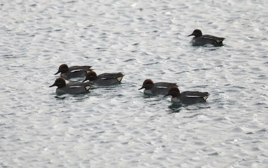 据拍摄者杨元杰介绍,前几日在滏阳河边拍摄,无意中发现了这群鸭子,上网查阅资料后才知道是绿翅鸭,目前观察到这群鸭子共6只,常常在滏阳河轻工桥附近活动。