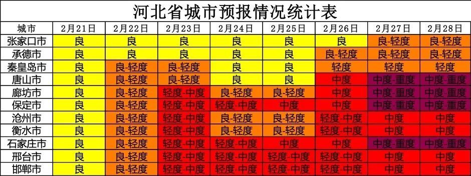 经河北省生态环境应急与重污染天气预警中心与中国环境监测总站、省气象灾害防御和环境气象中心联合会商,预计2023年2月下旬(21日~28日),期间23日~28日,我省高空转平直西风,地面受南风影响,早晚湿度偏高,扩散条件不利,中南部和东部城市将出现中度及以上污染过程,期间24日~25日,部分城市受东北风扰动影响,湿度降低,污染程度略有缓解。