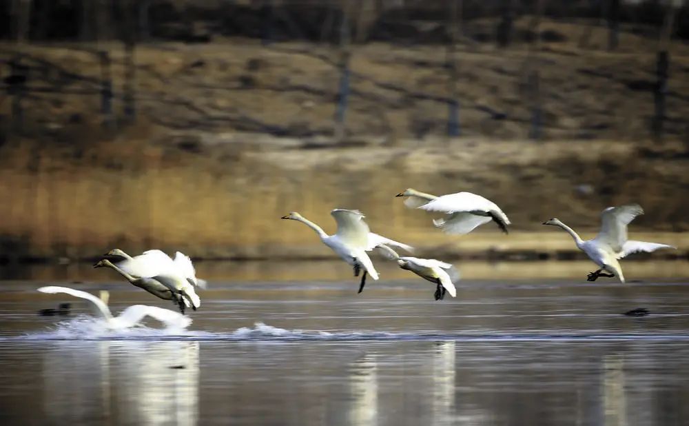 随着石家庄市生态环境建设大幅度提高,越来越多的鸟儿“入住”省会。每年春天,一批批天鹅都会如约而至,但与往年有所不同,今年的“先头部队”全都是大天鹅,它们以优美的姿态游弋在滹沱河中,让这片水域瞬间变成了“天鹅湖”。
